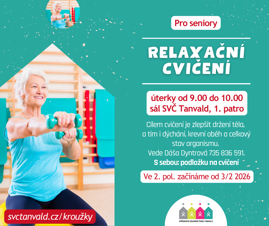 Cvičení si můžete přijít vyzkoušet. Lekce se konají v úterý od 9.00 do 10.00. Hlaste se u Dáši Dyntrové (tel. 735 836 591). Cena zkušební lekce je 50,- Kč. Ve druhém pololetí se začne cvičit od 3. 2. 2026.