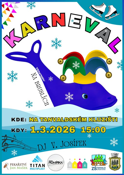 Přemýšlíte, co podniknout o víkendu? Pojďte si v neděli užít Karneval na bruslích. Navlečte se do kostýmu, vezměte brusle a na 15. hodinu dorazte na kluziště za ZŠ Sportovní v Tanvaldě na Výšině. Chybět nebudou soutěže ani muzika v podání DJ Vláďi Josífka. O přípravu kluziště se postará Skiareál Pionýrka, o ceny zase Pekařství Jan Mašek a firma Titan - Multiplast s. r. o. Děkujeme! Těšíme se na vás...